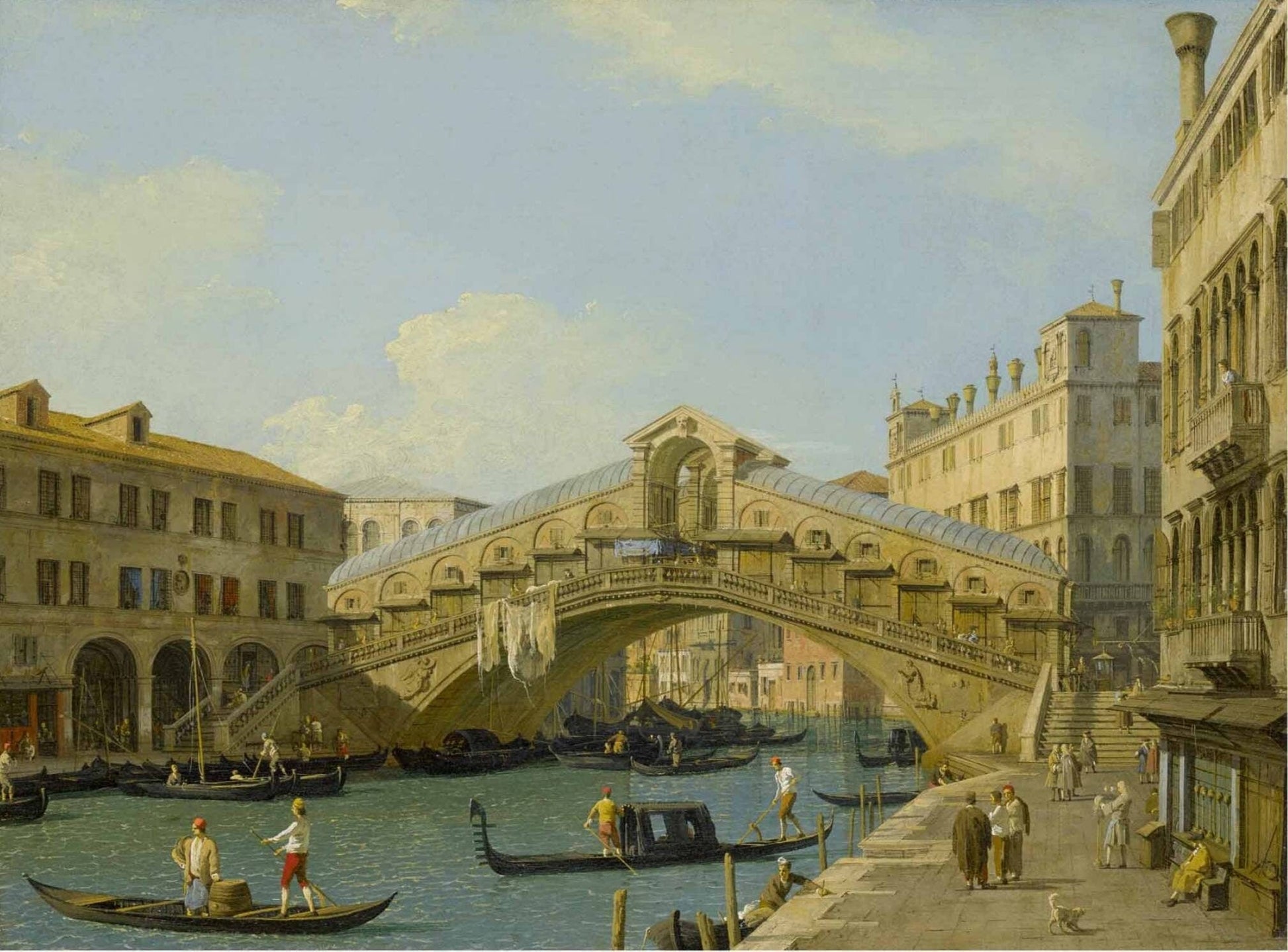 Venice, A View Of The Grand Canal Looking North Towards The Rialto Bridge by Canaletto